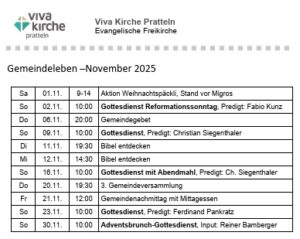 Alle zwei Monate veröffentlichen wir hier unsere Gemeindeaktivitäten. Wir freuen uns, Dich bei einem Besuch persönlich kennenzulernen!