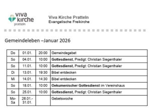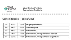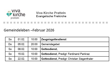 Alle zwei Monate veröffentlichen wir hier unsere Gemeindeaktivitäten. Wir freuen uns, Dich bei einem Besuch persönlich kennenzulernen!